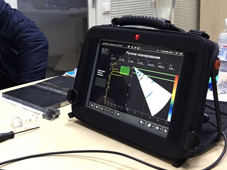 “Center of industrial diagnostics and control” LLC renders services for detection of corrosion, depth of external and internal corrosion damages of base metal and determination of its actual thickness along the whole length of examined material. Works are conducted using ultrasonic phased array flaw detector Mentor UT 32/32 (General Electric). This device is optimized for corrosion monitoring and provides the highest level of quality and accuracy of measurements with resolving power by thickness up to 0,05 mm. Besides the device can stand up to tough environment of field usage with an IP65 durability rating.